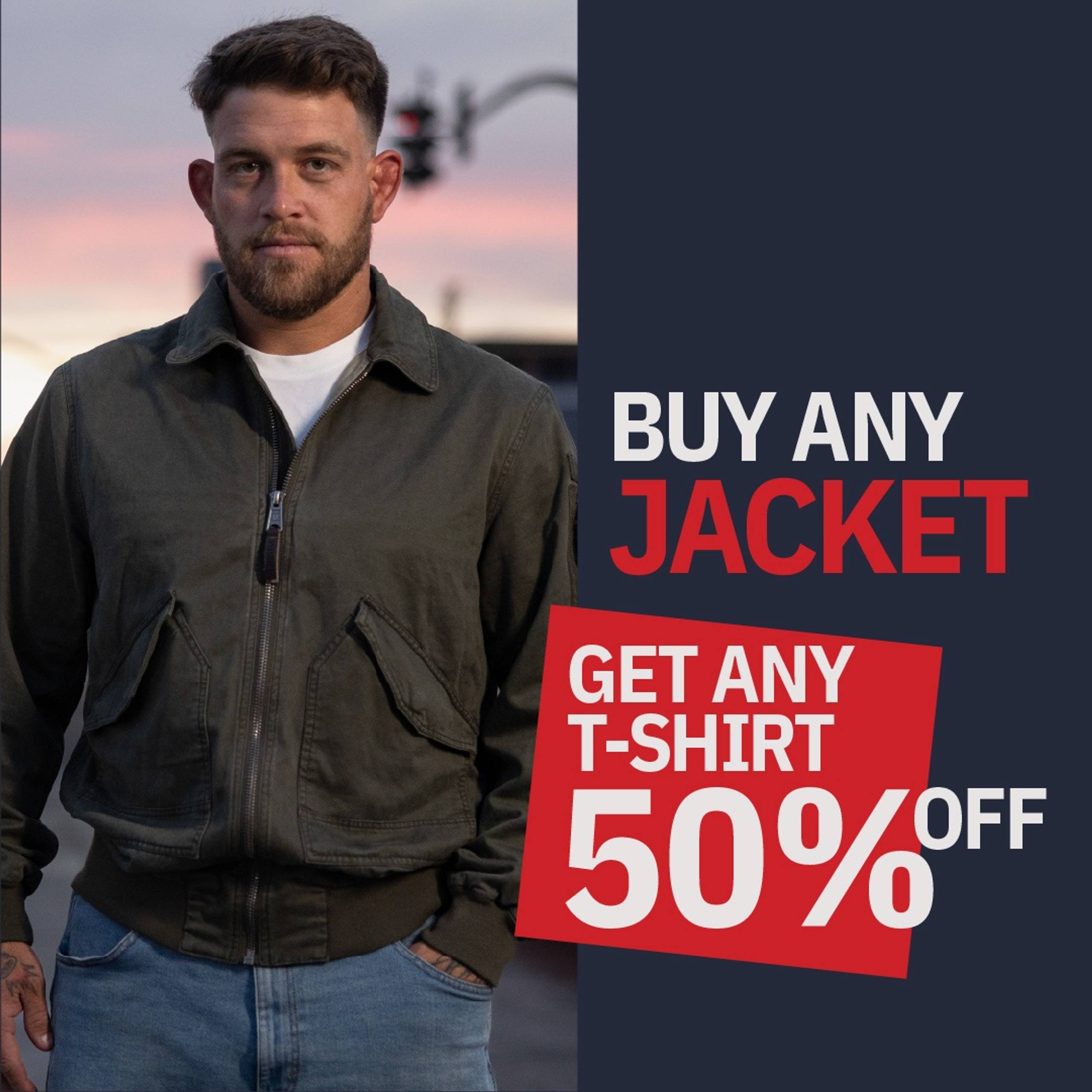 Create your own set: choose any jacket and get 50% off a T-shirt.